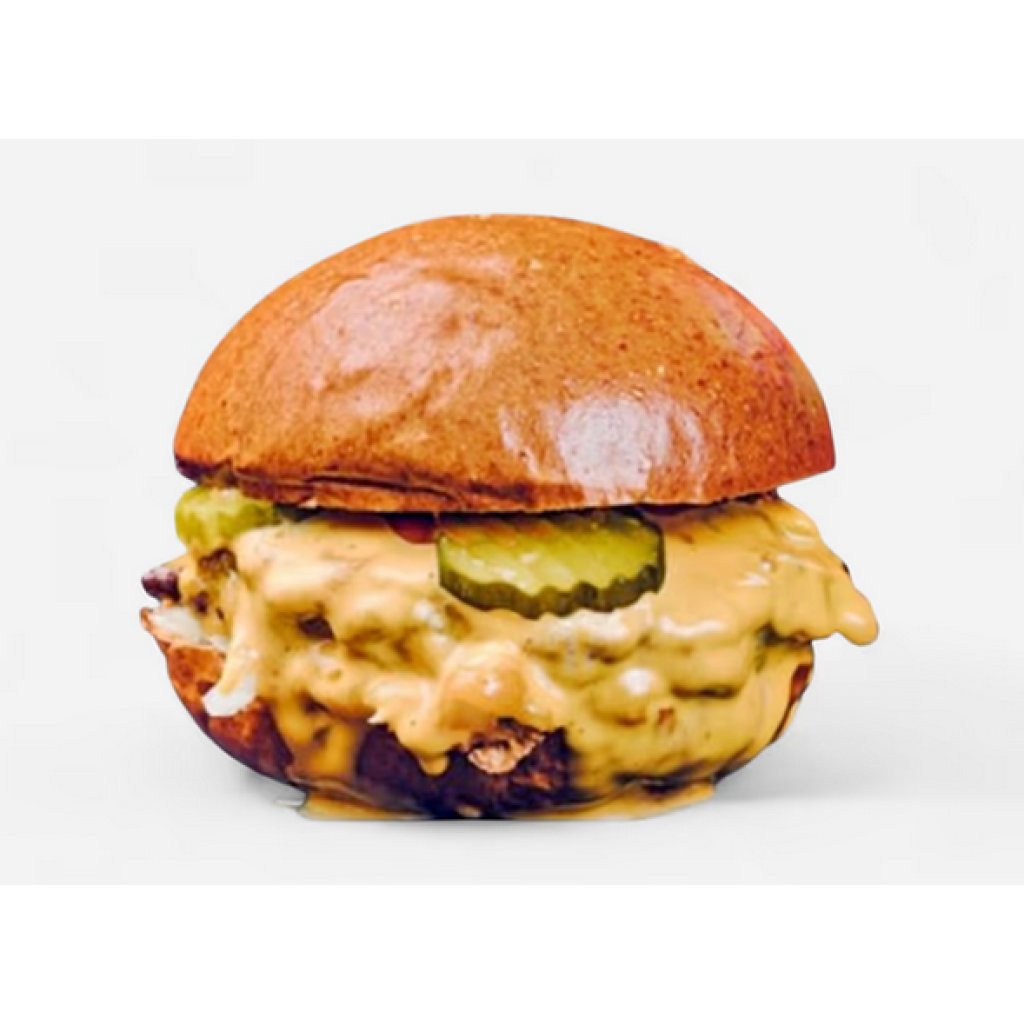 ŠŤAVNATÉ HOVĚZÍ MASO, MÁSLOVÁ BULKA, BURGER OMÁČKA, SÝR CHEDAR, GOUDA, KŘUPAVÁ CIBULKA, STERIL. OKUREK, RAJČE, LEDOVÝ SALÁT zobrazit více