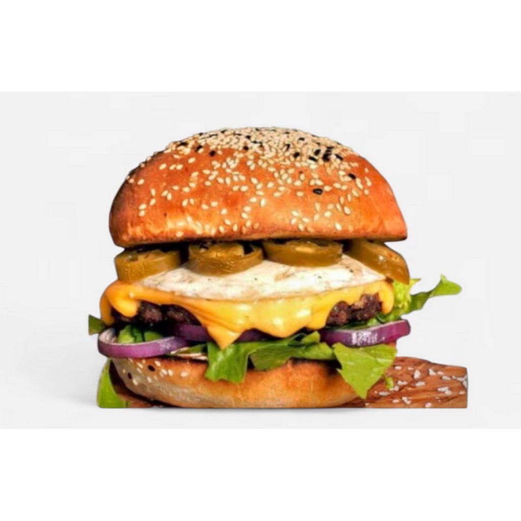 ŠŤAVNATÉ HOVĚZÍ MASO, MÁSLOVÁ BULKA, PIKANTNÍ OMÁČKA, GOUDA, KŘUPAVÁ SLANINA, JALAPEŇOS, RAJČE, LEDOVÝ SALÁT zobrazit více