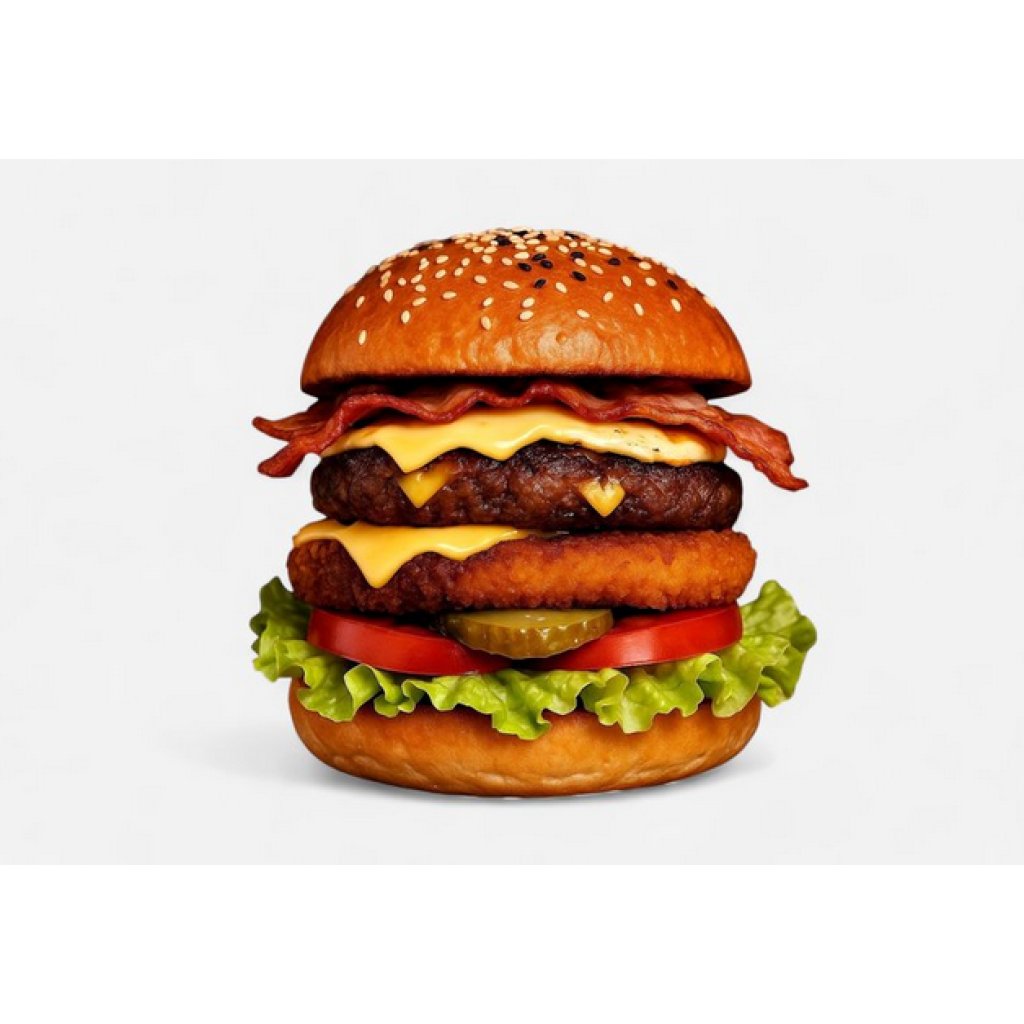 ŠŤAVNATÉ HOVĚZÍ MASO, SMAŽENÝ SÝR GOUDA, MÁSLOVÁ BULKA, ČESNEKOVÁ OMÁČKA, KŘUPAVÁ SLANINA, STERIL. OKUREK, RAJČE, LEDOVÝ SALÁT zobrazit více